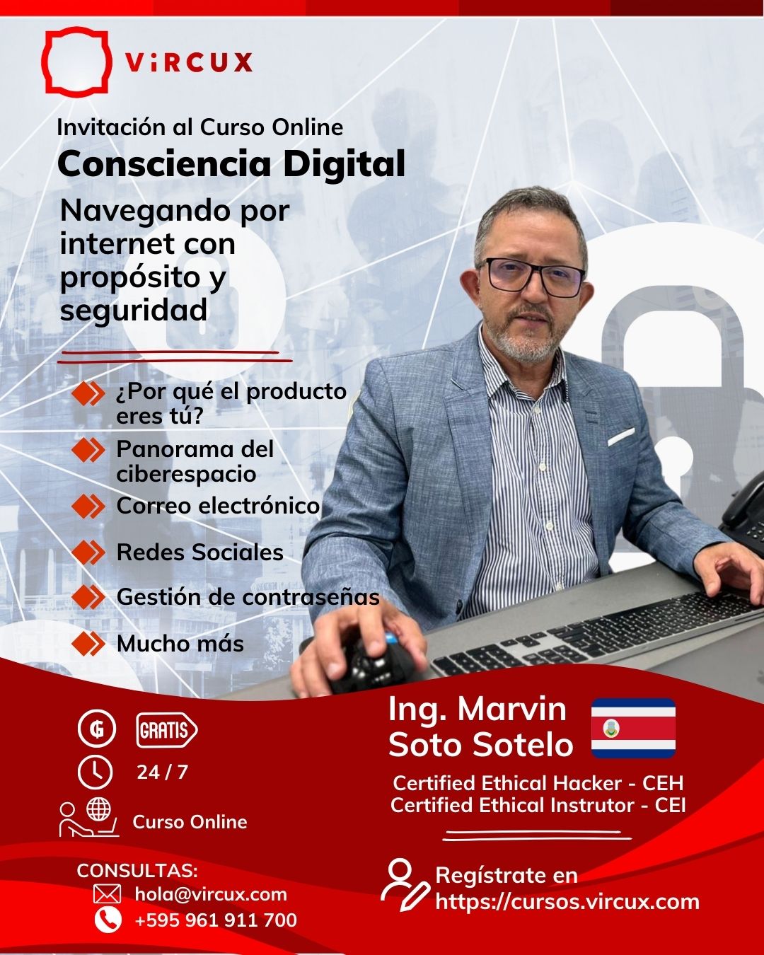 Para acceder a los cursos, talleres y sesiones online de Vircux debes estar registrado y tener una cuenta activa.
